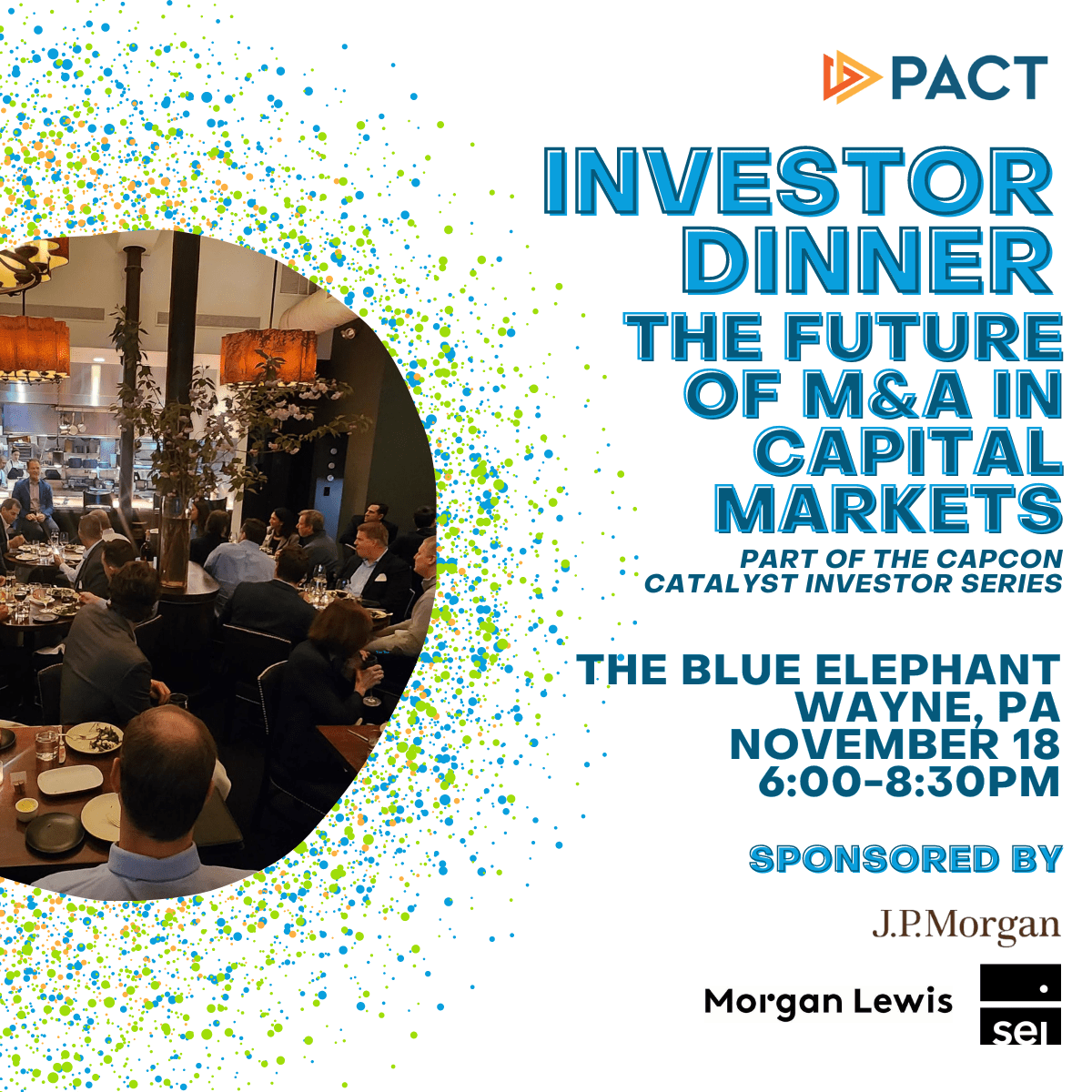 Join us for PACT's exclusive investor-only dinner, where we will explore the evolving landscape of M&A in capital markets. Industry experts will share insights on emerging trends, regulatory shifts, and strategic opportunities shaping future transactions. This intimate event promises a deep dive into the forces driving growth and innovation in M&A, tailored for the investor community.